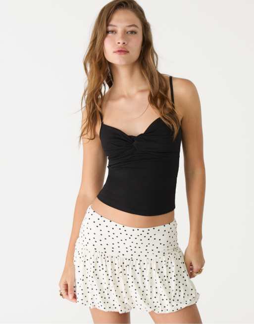 Stradivarius - Top à bretelles fines et détail noué - Noir
