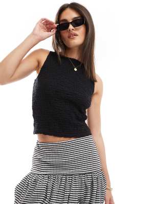 Stradivarius - Top effet froissé à encolure bateau - Noir