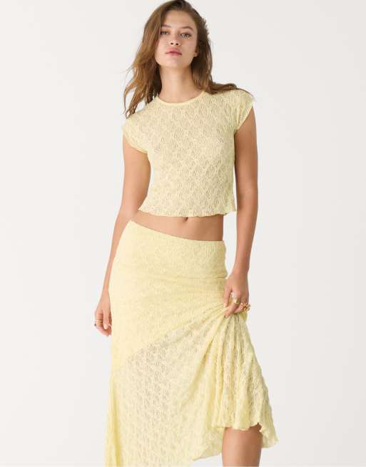 Stradivarius - Top en dentelle à mancherons - Jaune pastel