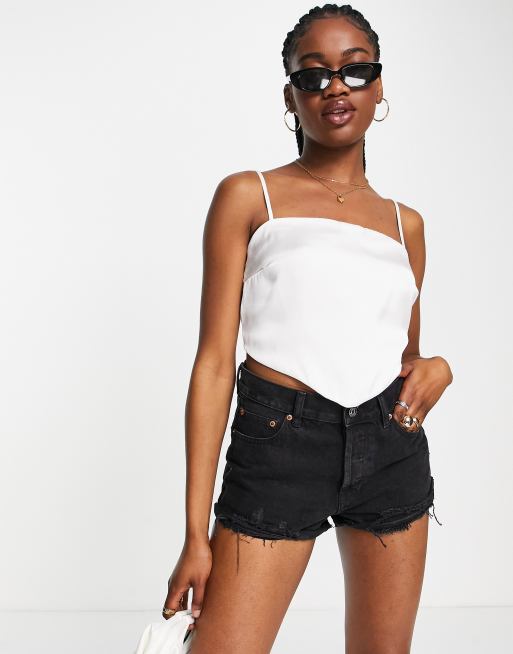 Stradivarius - Top satiné à bretelles fines et ourlet en pointe - Blanc