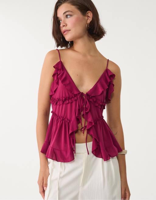 Stradivarius - Top volanté à bretelles fines - Violet