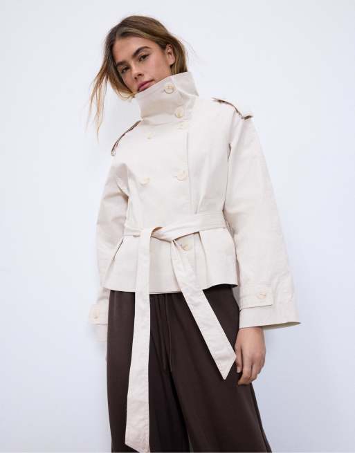 Stradivarius - Trench-coat à col montant avec ceinture - Glacier