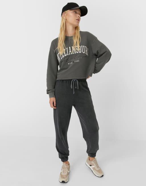 Stradivarius - Williamsburg - Sweat style universitaire - Gris délavé à l'acide