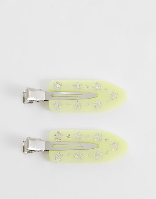 Sui Ava - Lot de 2 barrettes à cheveux à fleurs en strass - Vert
