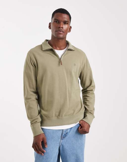 Superdry - Classic Essential - Pull à col zippé - Vert kaki clair
