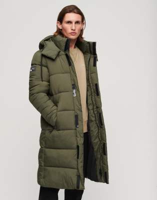 Superdry - Doudoune longue en tissu ripstop - Vert mousse foncé effet quadrillé