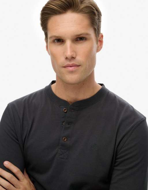 Superdry - Essential - T-shirt à col boutonné - Anthracite foncé