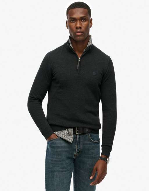 Superdry - Essentials - Pull zippé en coton - Anthracite chiné