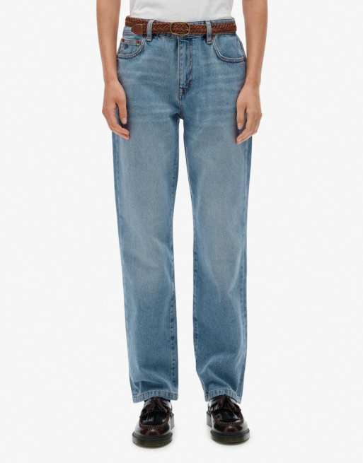 Superdry - Jean droit en coton à taille mi-haute - Bleu moyen