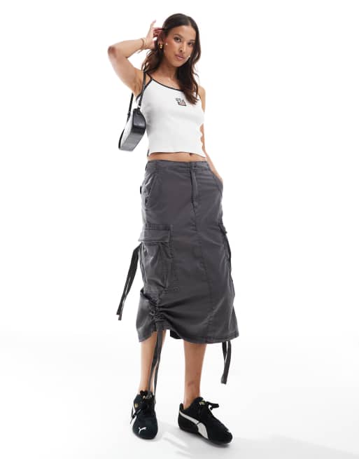 Superdry - Jupe cargo mi-longue - Gris asphalte