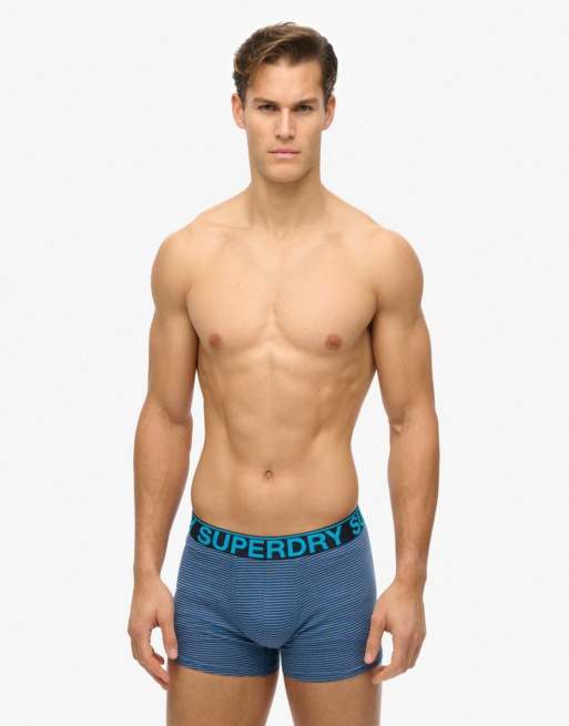 Superdry - Lot de trois boxers - Bleu marine/bleu rayé/bleu marine feeder