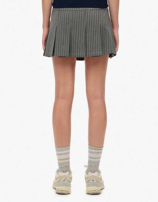 Superdry - Mini-jupe plissée à fines rayures - Gris