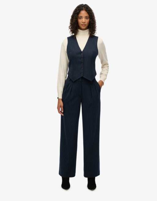 Superdry - Pantalon taille mi-haute à fines rayures - Bleu marine