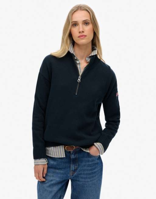 Superdry - Pull ample à demi-zip en maille - Bleu marine éclipse