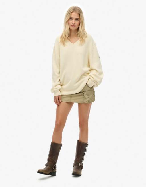 Superdry - Pull oversize à col en V - Blanc naturel