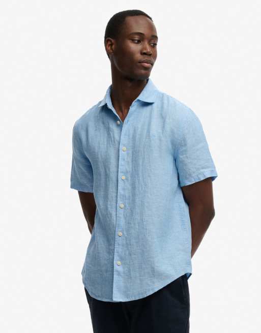 Superdry - Riviera - Chemise en lin à manches courtes - Chambray bleu ciel
