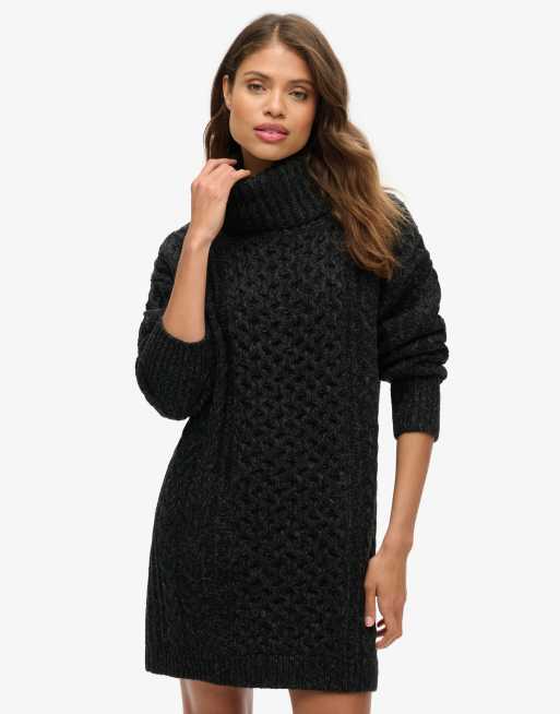 Superdry - Robe pull en maille torsadée avec col roulé - Noir