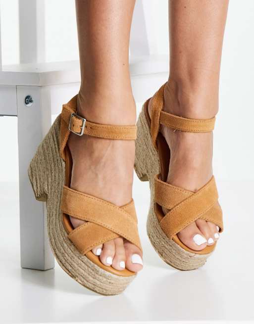 Superdry - Sandales style espadrilles à talon haut - Fauve