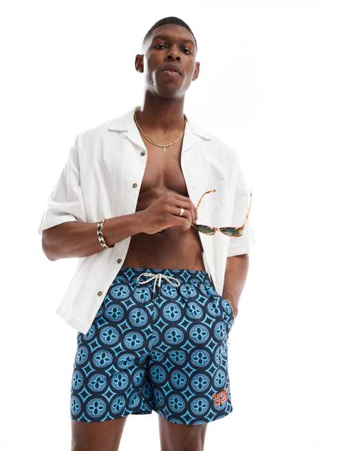 Superdry - Short de bain 17 pouces à imprimé mosaïque - Bleu talavera