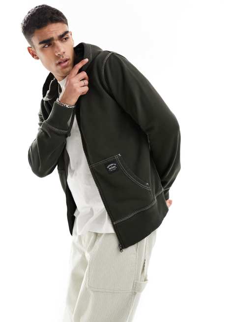 Superdry - Sweat à capuche décontracté zippé à coutures contrastantes - Gris-vert foncé