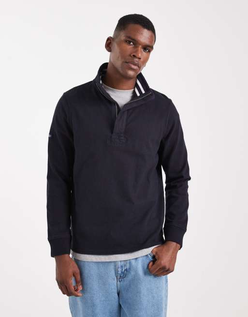Superdry - Sweat classique en jersey de coton à col zippé - Bleu marine éclipse