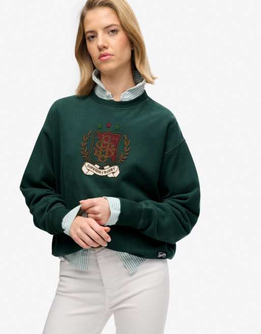 Superdry - T-shirt ras de cou ample avec écusson - Vert sapin foncé