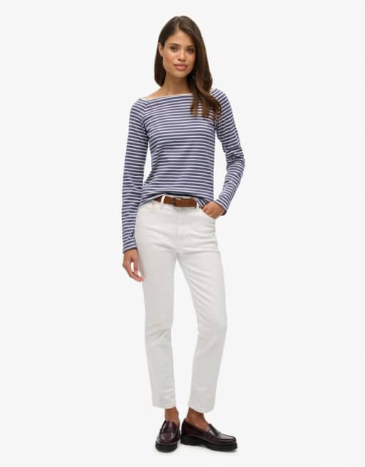 Superdry - Top à épaules dénudées et rayures - Bleu marine