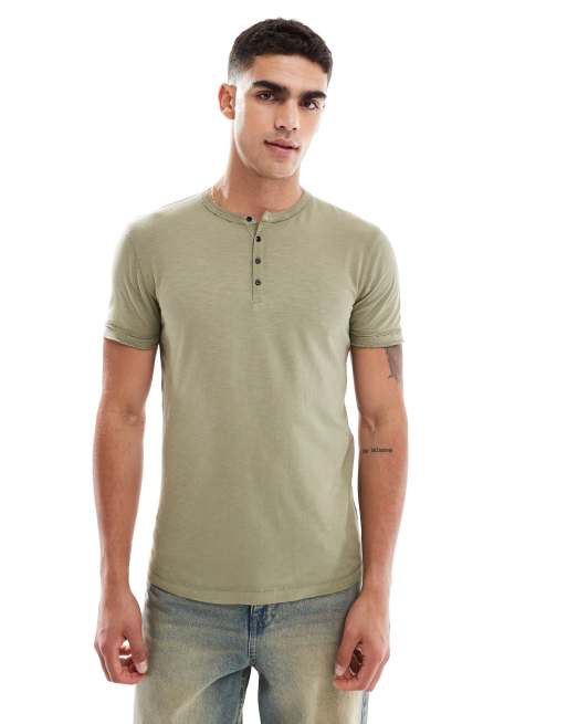 Superdry - Top à manches courtes et col officier en jersey flammé - Vert kaki clair