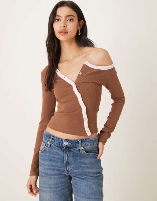 Susmie's - Ella - Top asymétrique contrastant - Marron et rose