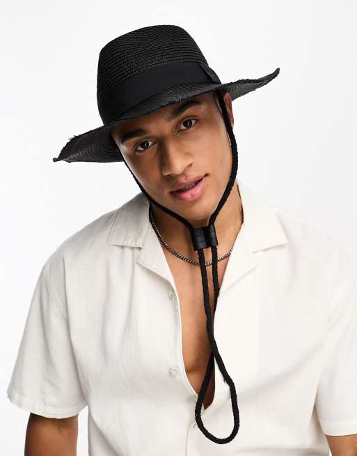 SVNX - Fedora en paille avec cordon de serrage - Noir