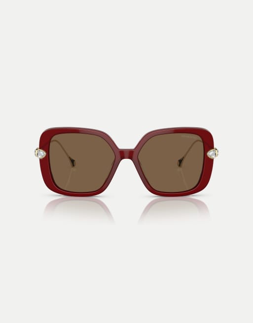 Swarovski - Lunettes de soleil rectangulaires avec verres marron - Bordeaux transparent