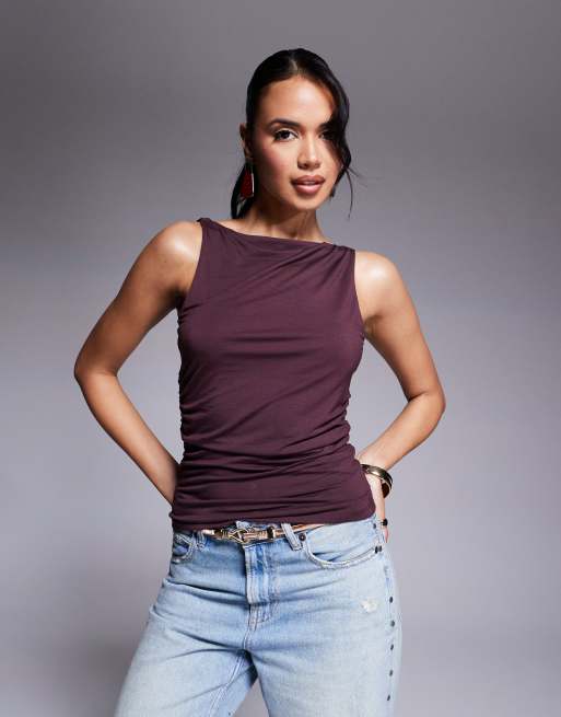 Tala - 365 - Top froncé à encolure bateau - Lie-de-vin