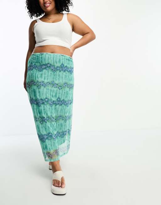 Tammy Girl Plus - Jupe mi-longue en tulle avec imprimé batik - Bleu