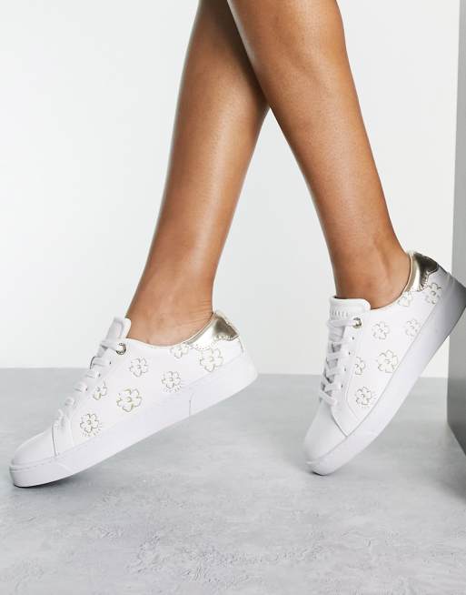 Ted Baker - Taliy - Baskets avec imprimé magnolia doré - Blanc