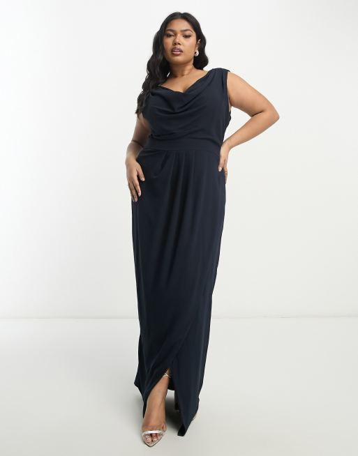 TFNC Plus - L'invitée - Robe longue cache-cœur en mousseline avec col et dos bénitier - Bleu marine