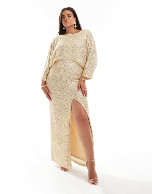 TFNC Plus - Robe longue style kimono à sequins - Doré