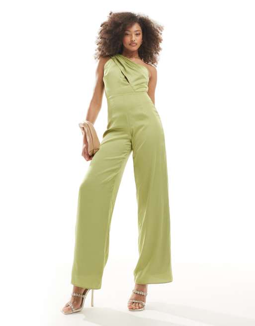 TFNC - L'invitée - Combinaison asymétrique en satin - Olive