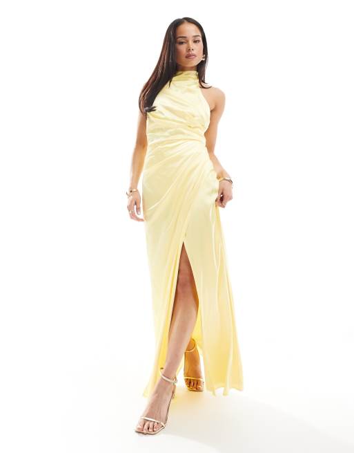TFNC - L'invitée - Robe longue en satin à col montant et nœud au dos - Citron