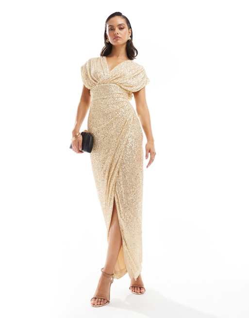 TFNC - Robe cache-cœur longue ornée de sequins - Doré
