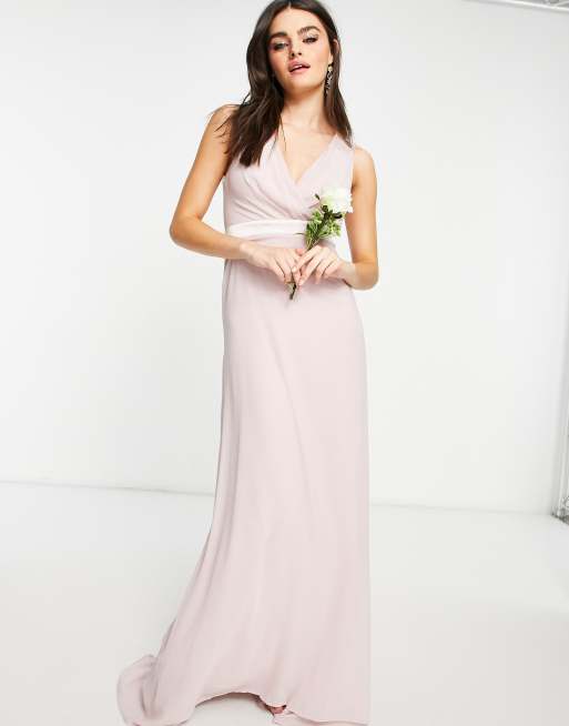 TFNC - Robe longue pour demoiselle d'honneur avec décolleté plongeant et nœud au dos - Vison