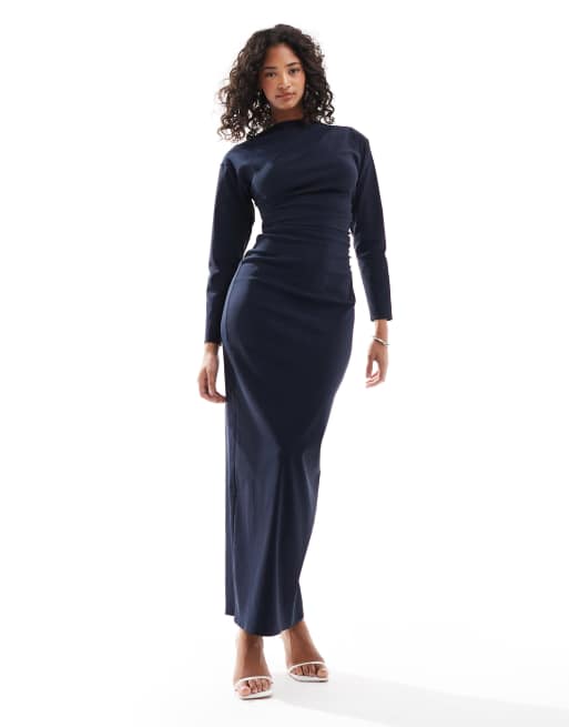 TFNC - Robe longueur mollet structurée en bengaline - Bleu marine