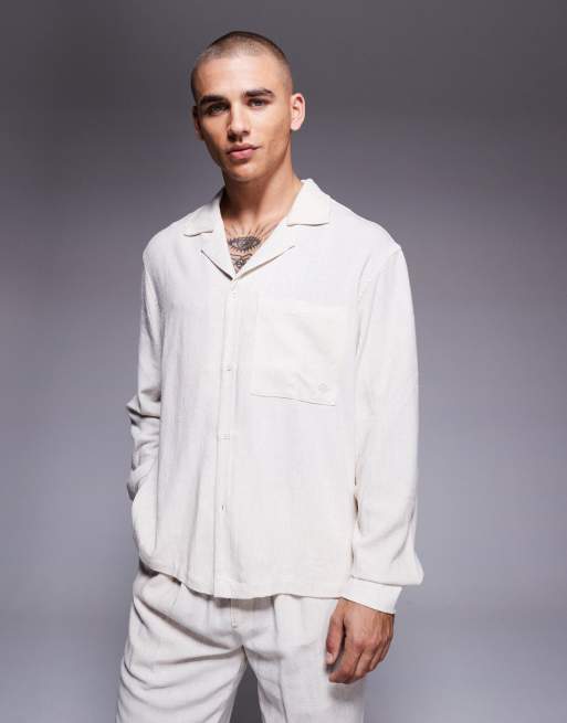 The Couture Club - Chemise d'ensemble en tissu texturé à manches longues - Beige