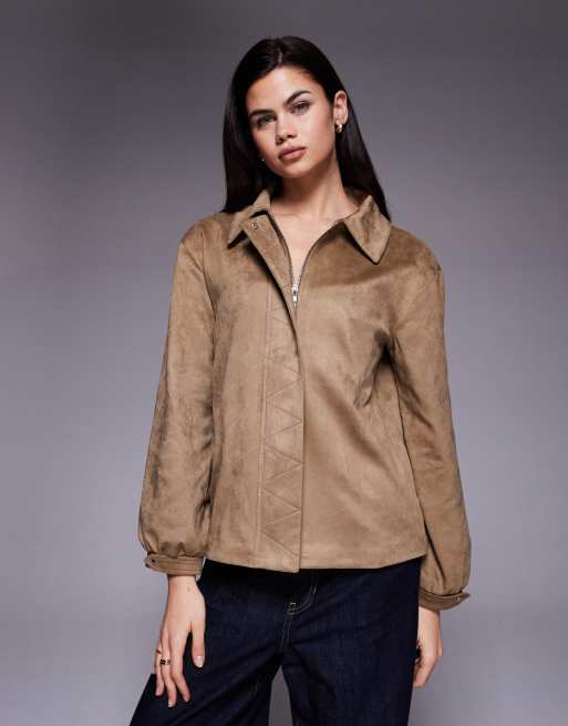Exclusivité - The Frolic - Bomber en imitation daim à manches ballon - Moka