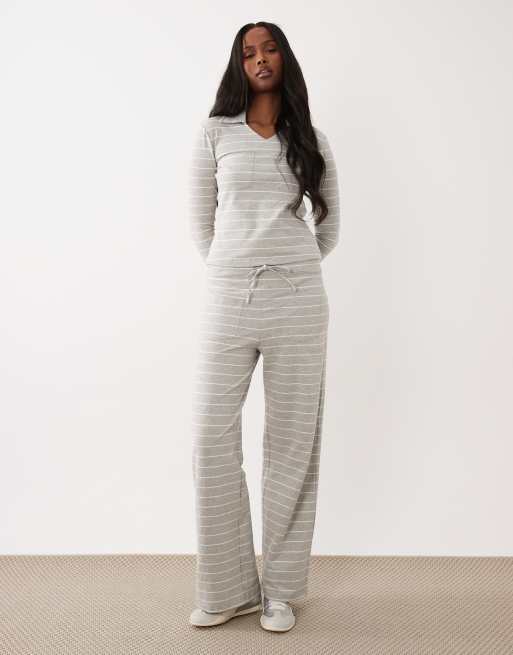 Exclusivité - The Frolic - Ensemble à rayures fines avec top manches longues à col V et poche sur le devant et pantalon ample - Gris