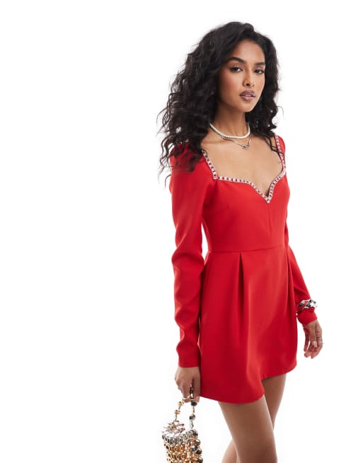Exclusivité - The Frolic - Robe courte à décolleté en cœur bordé de strass - Rouge