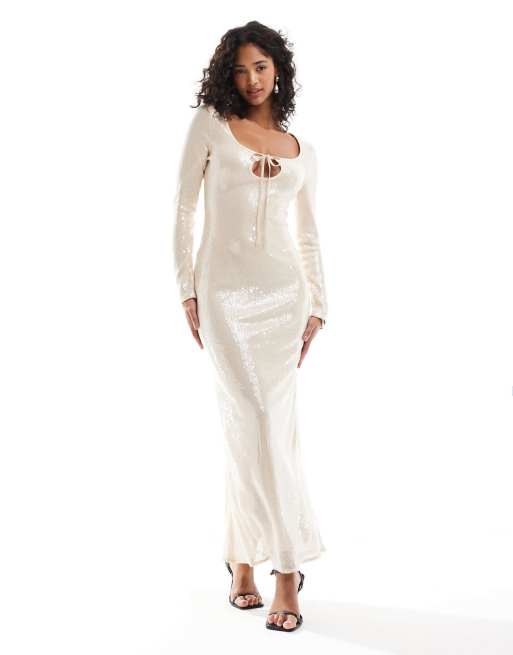 Exclusivité - The Frolic - Robe longue moulante nouée devant à sequins - Doré