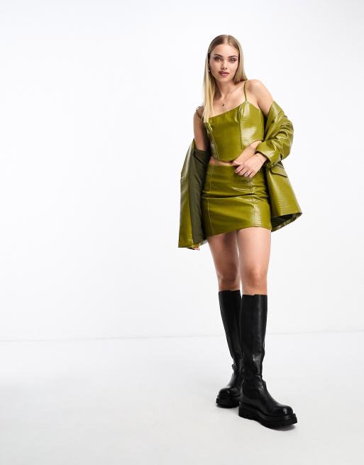 Exclusivité - The Frolic - Top corset d'ensemble verni imitation croco - Vert fougère