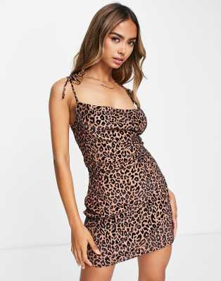 The Frolic - Robe courte effet dévoré à bretelles fines et imprimé léopard - Fauve