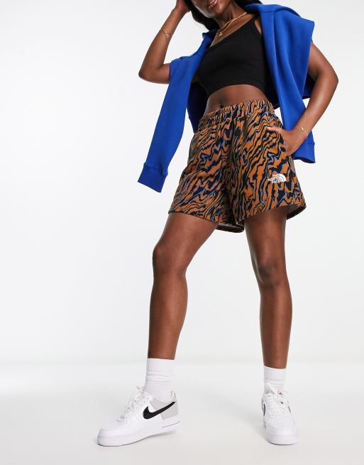 Exclusivité ASOS - The North Face - Essential - Short taille haute en jersey à imprimé marbré - Marron