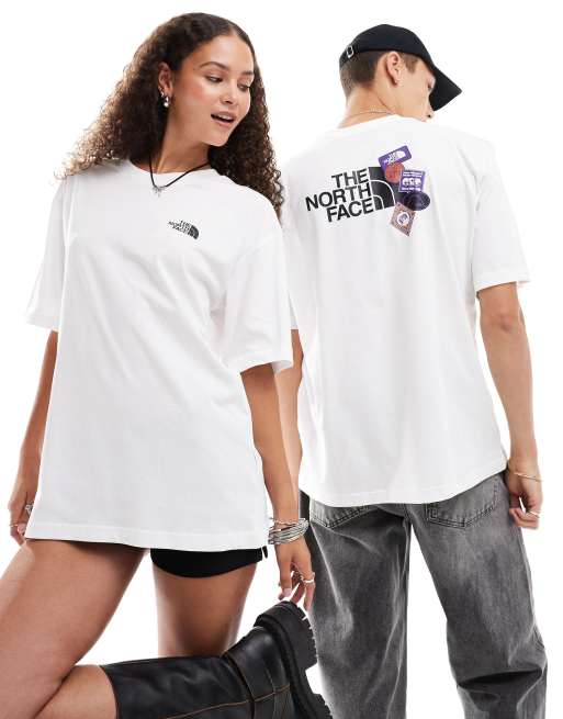 Exclusivité ASOS - The North Face - Expedition - T-shirt oversize à autocollants imprimés au dos - Blanc
